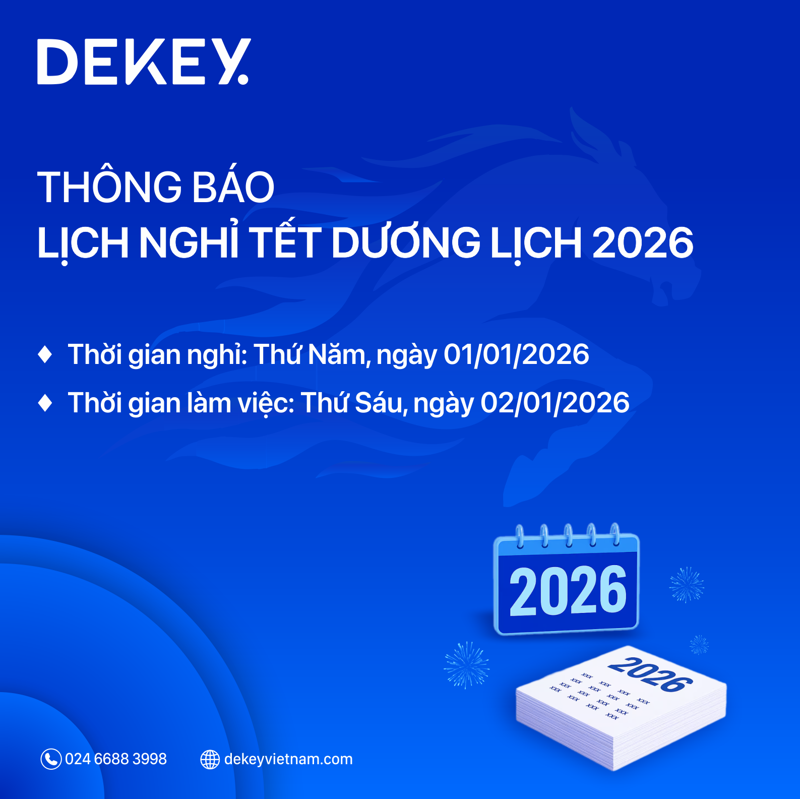 Trong thời gian nghỉ lễ, Quý khách hàng cần hỗ trợ vui lòng liên hệ Hotline: 024 6688 3998 hoặc Email info@dekey.com.vn. Tham khảo thông tin chi tiết tại: https://news.dekeyvietnam.com/dekey-vietnam-thong-bao-lich-nghi-tet-duong-lich-2026/